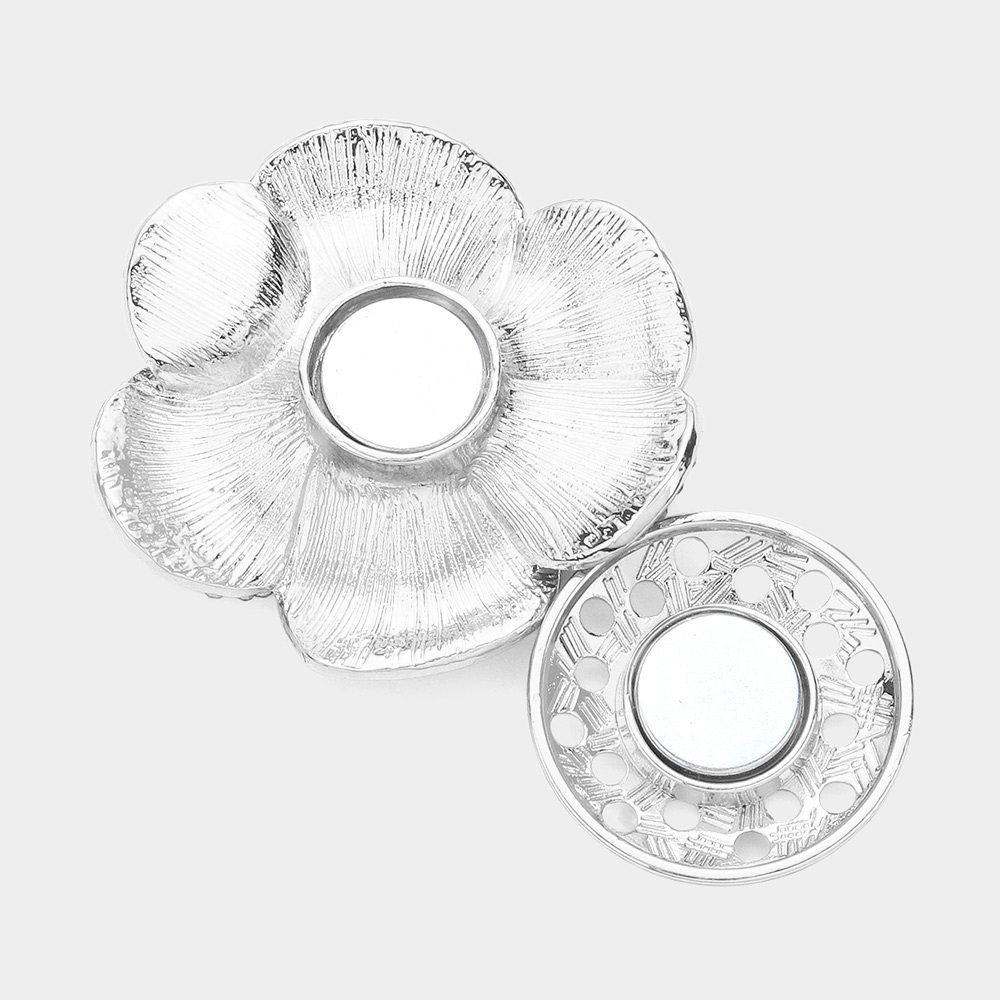 Glass Stone Pearl Embellished Flower Hinged Bangle Bracelet