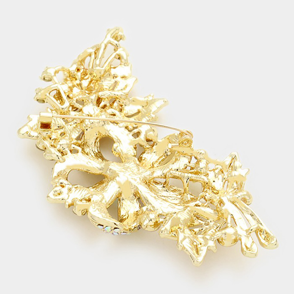 Crystal Stone Paved Flower Pin Brooch
