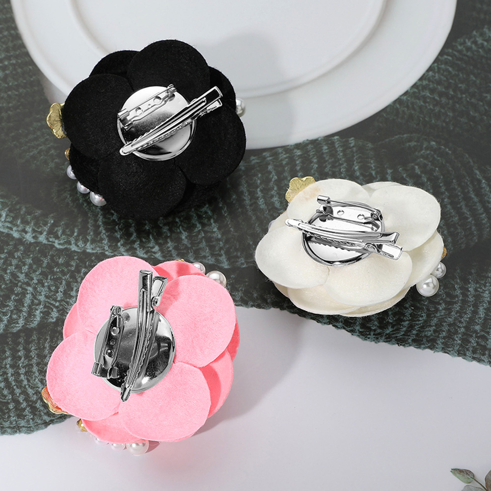 Enamel Flower Pearl Embellished Fabric Flower Pin Brooch Hair Clip
