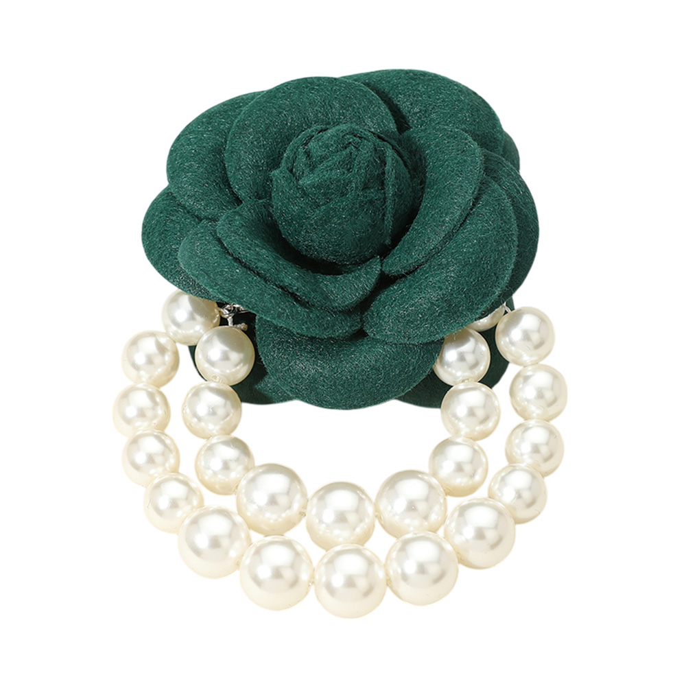 Details • Size : 3" X 4" • Pin Brooch • Charming floral brooch featuring a soft sculpted flower paired with two glossy bead loops for a standout layered look. A stylish accent for bags, scarves, hats, and outfits, offering a feminine touch and decorative flair suitable for everyday wear or special occasions. • Lead and Nickel Compliant