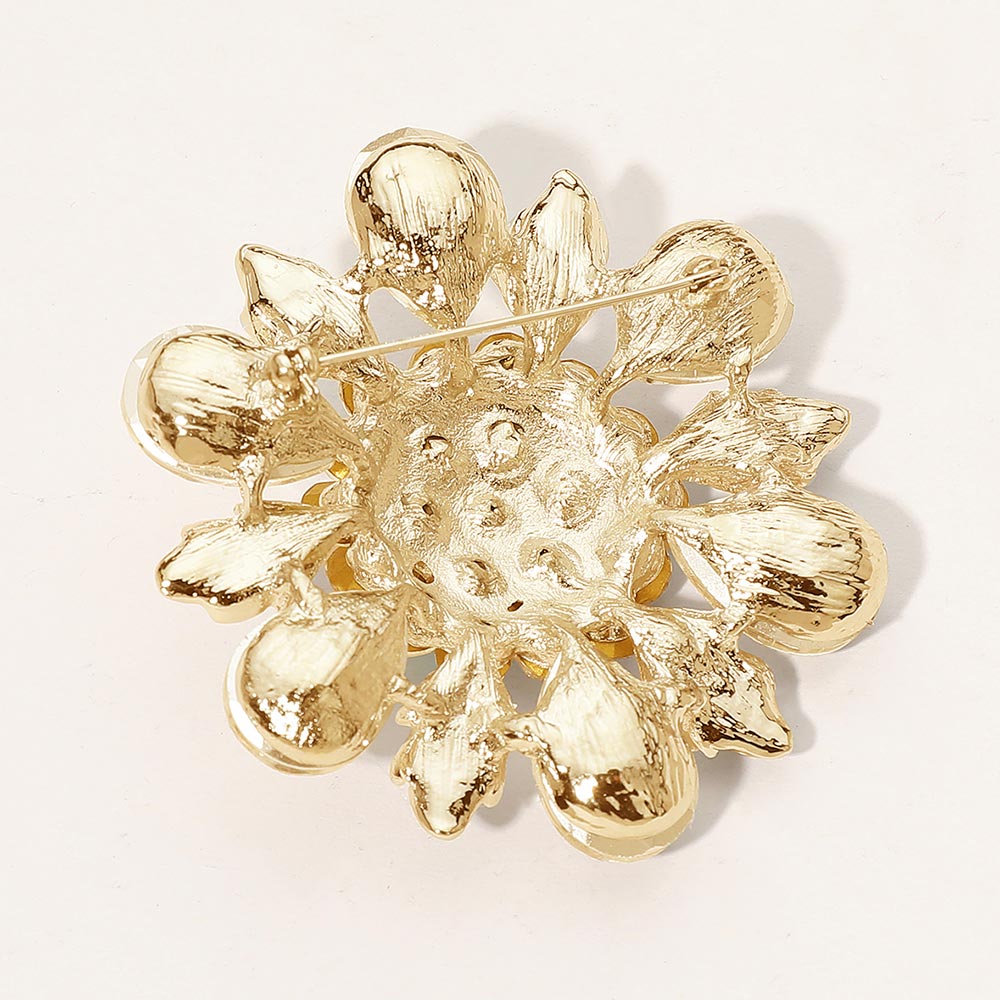 Floral Glass Stone Pin Brooch