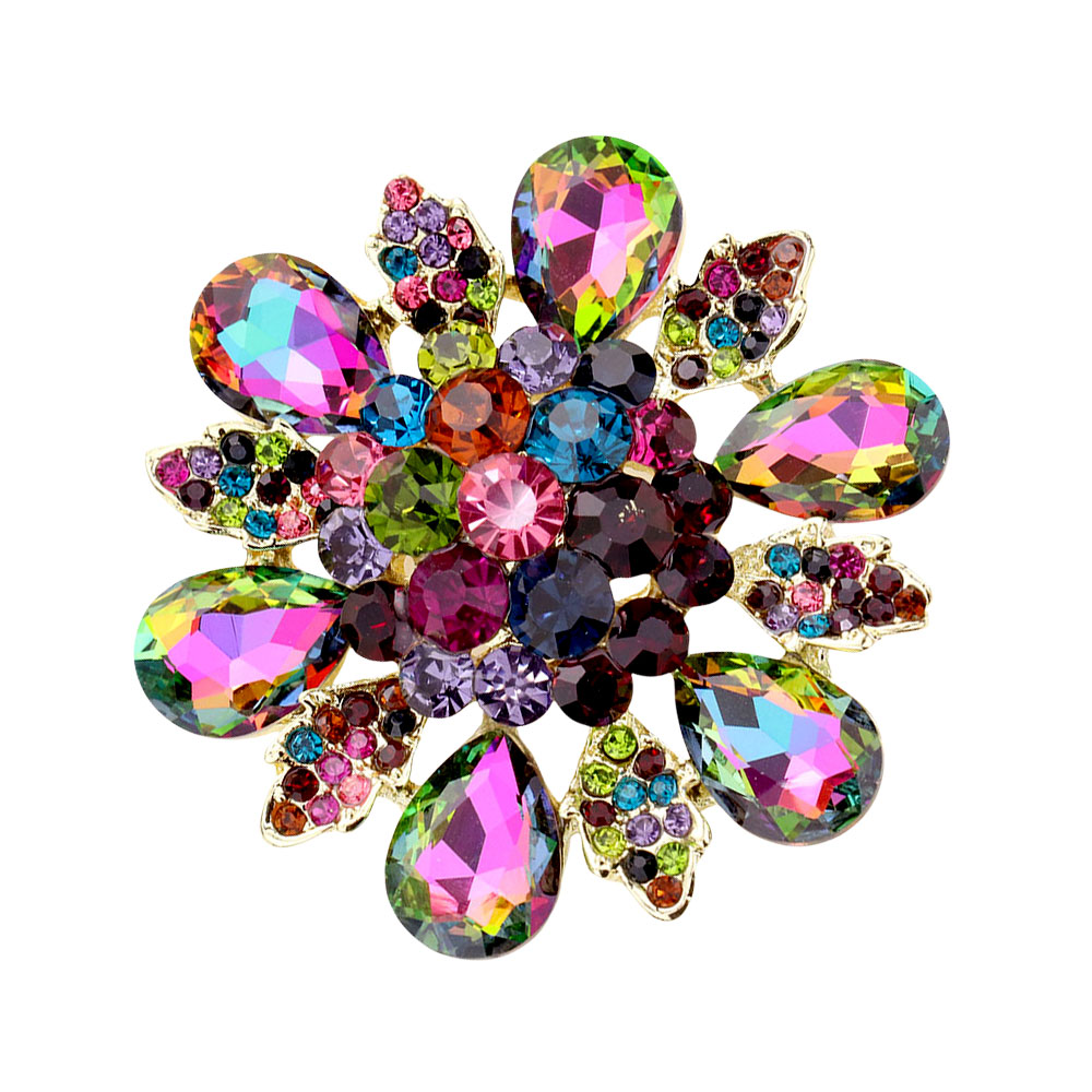 Details • Size : 2.5" X 2.5" • Pin Brooch • This elegant crystal flower brooch adds a radiant touch to any outfit with its beautifully arranged sparkling stones and refined floral silhouette. Perfect for elevating everyday looks or enhancing formal attire, it offers timeless charm and eye-catching brilliance. • Lead and Nickel Compliant