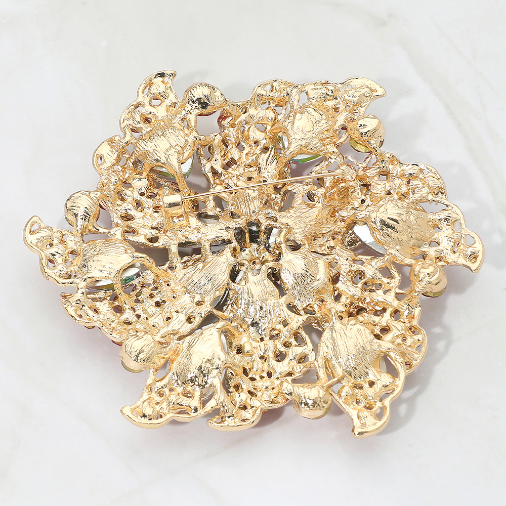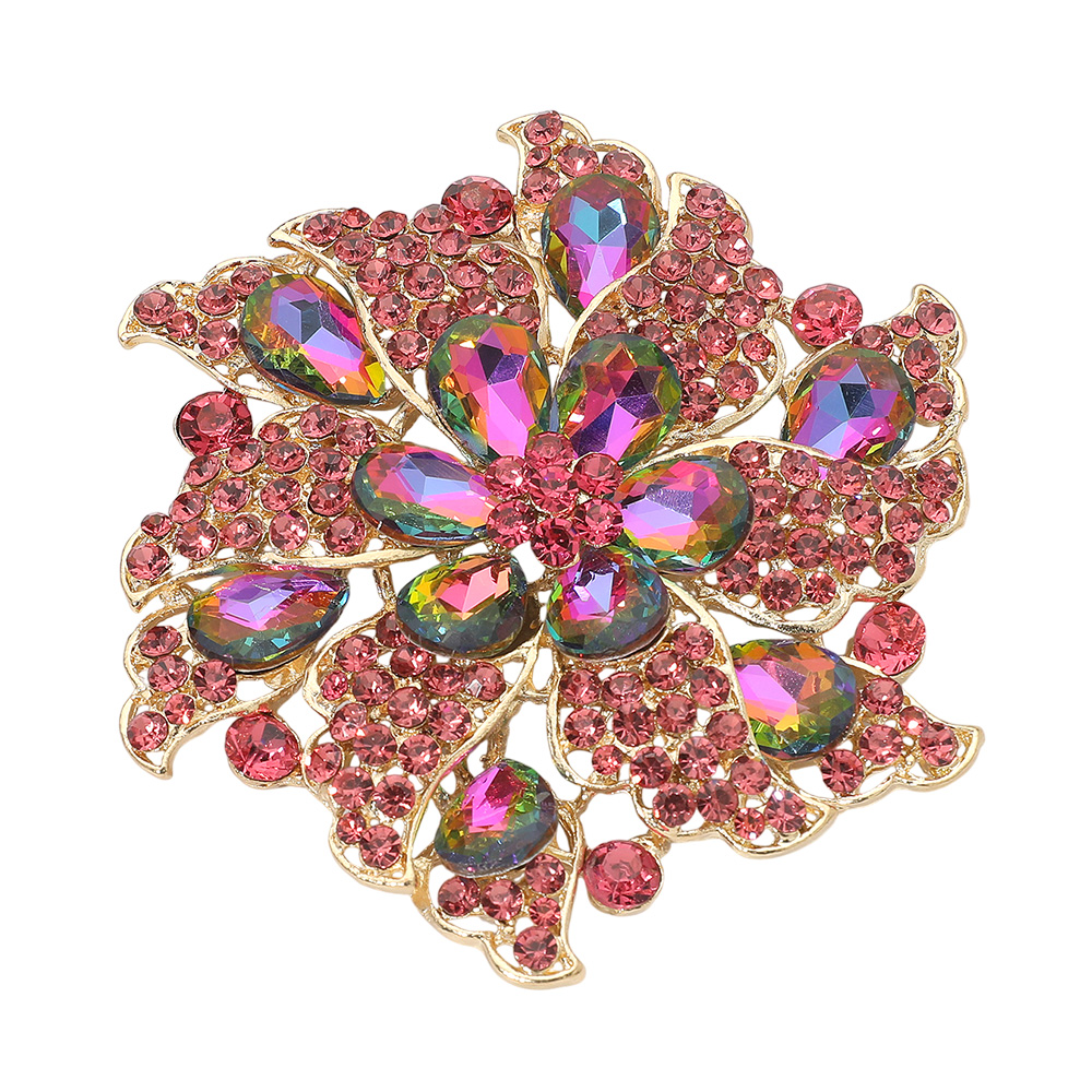 Details • Size : 4" X 4" • Pin Brooch • Elegant floral brooch featuring dazzling gemstone accents arranged in a radiant petal design. Perfect for adding a touch of glamour to jackets, dresses, or scarves, this statement accessory enhances any outfit with a refined and eye-catching sparkle. • Lead and Nickel Compliant