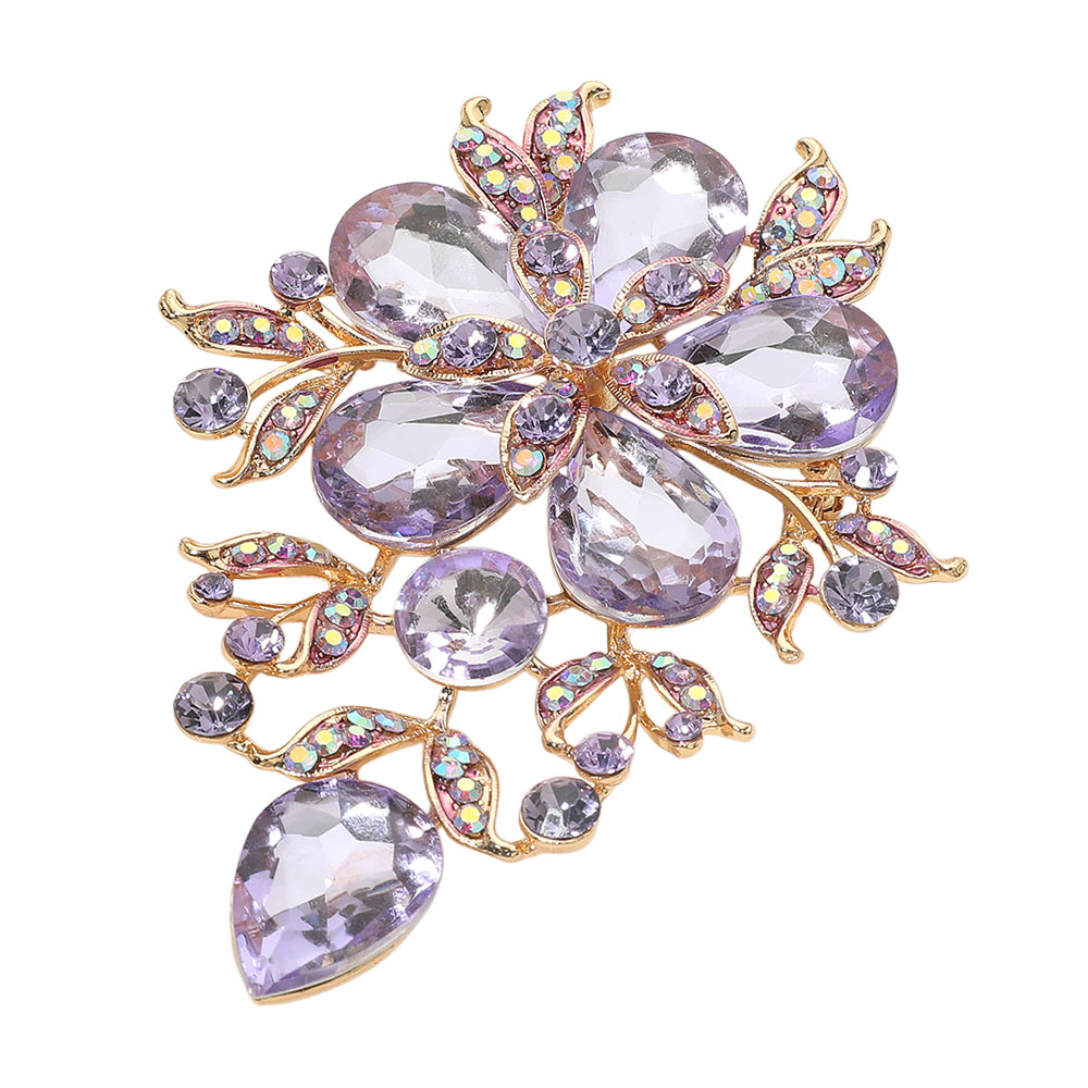 Details • Size : 3.6" X 4.8" • Pin Brooch • Glamorous rhinestone flower brooch featuring intricate floral design with sparkling accents. Perfect for elevating dresses, scarves, jackets, or evening wear. A bold statement piece that adds luxury and timeless charm, making it an ideal accessory for parties, weddings, or special events. • Lead and Nickel Compliant