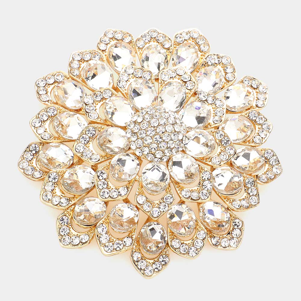 Glass Stone Embellished Flower Pin Brooch Glass Stone Embellished Flower Pin Brooch Glass Stone Embellished Flower Pin Brooch