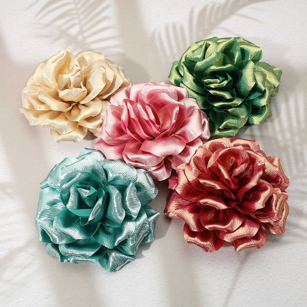 Metallic Fabric Flower Pin Brooch Hair Clip Hair Band Bracelet