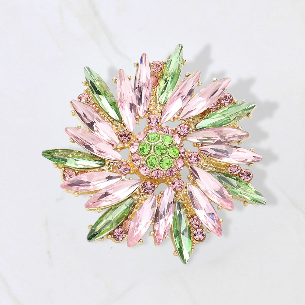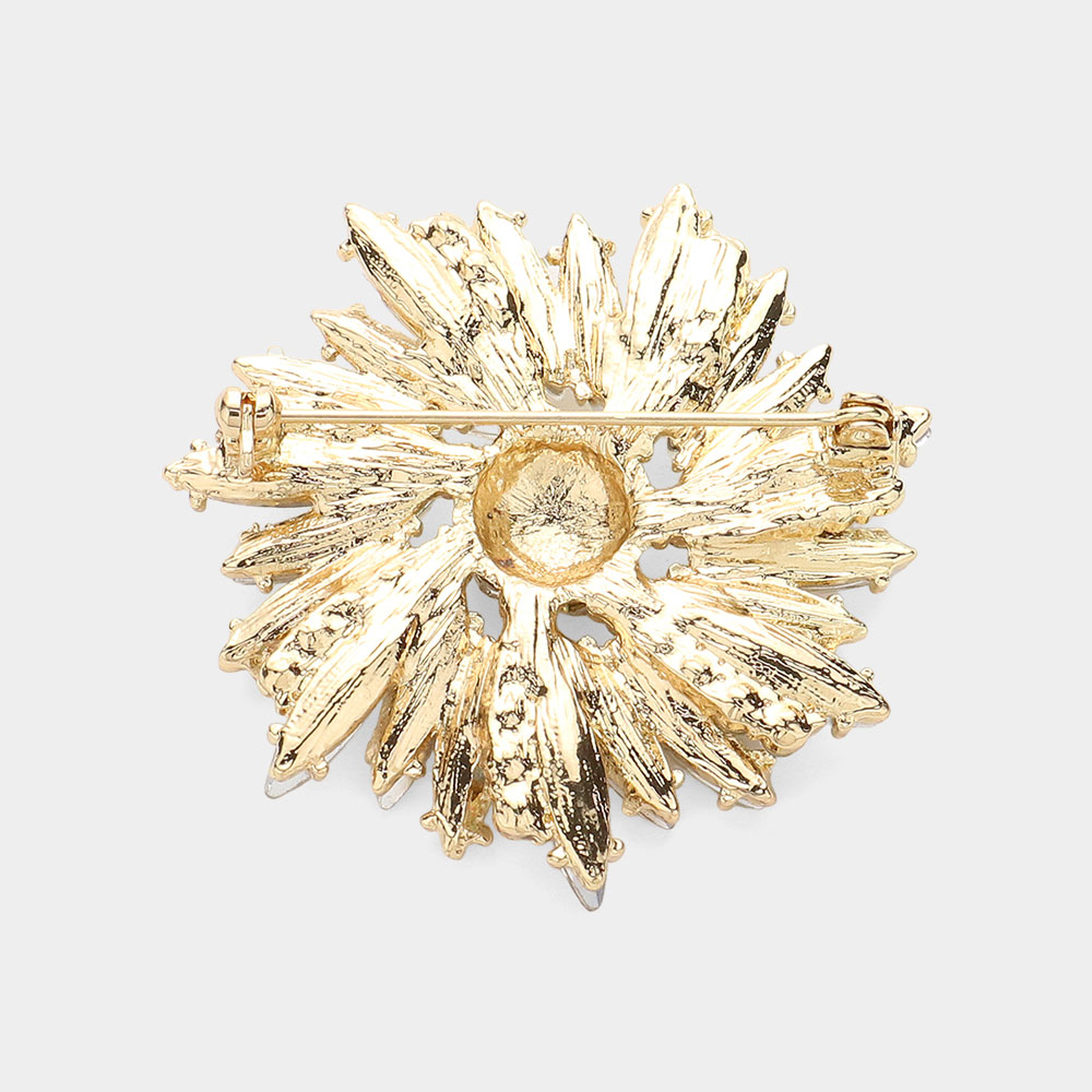 Details • Size : 2" X 2" • Pin Brooch • A bold sparkling floral design that adds instant glamour to jackets, dresses, scarves, and special-occasion outfits. Ideal for gifting or elevating everyday looks with an eye-catching accent that delivers standout style and elegance. • Lead and Nickel Compliant