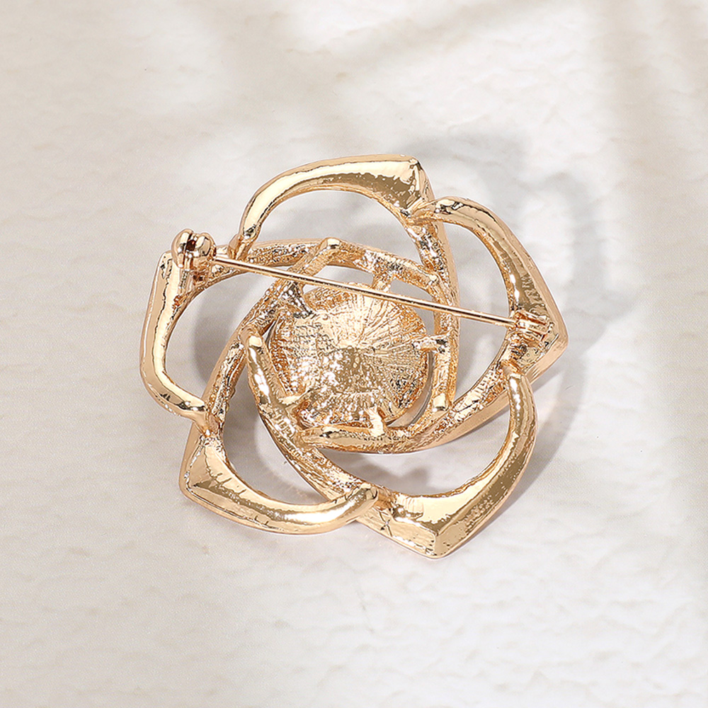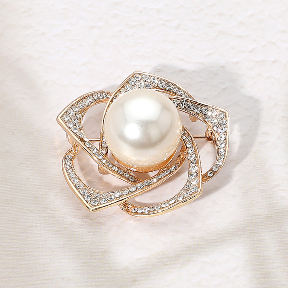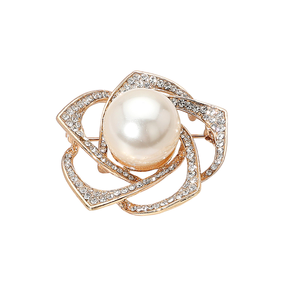 Pearl Pointed Stone Paved Flower Pin Brooch