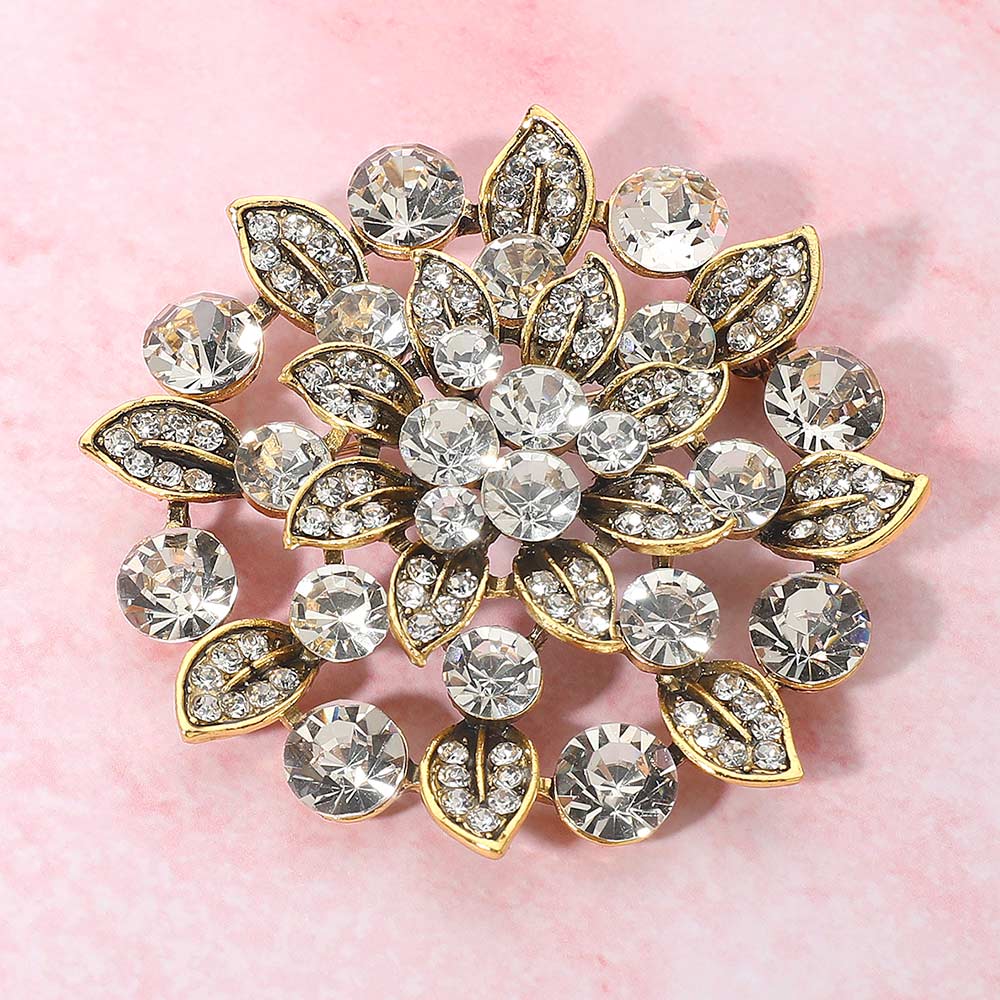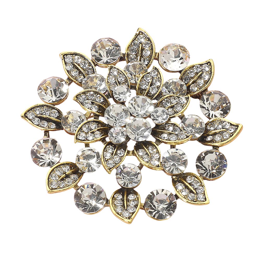 • Enhance your style with this crystal flower brooch, designed with sparkling stones arranged in a floral and leaf motif. A versatile accessory perfect for weddings, parties, or daily wear, this elegant pin adds charm to jackets, scarves, handbags, or hats and makes a thoughtful gift for someone special.
