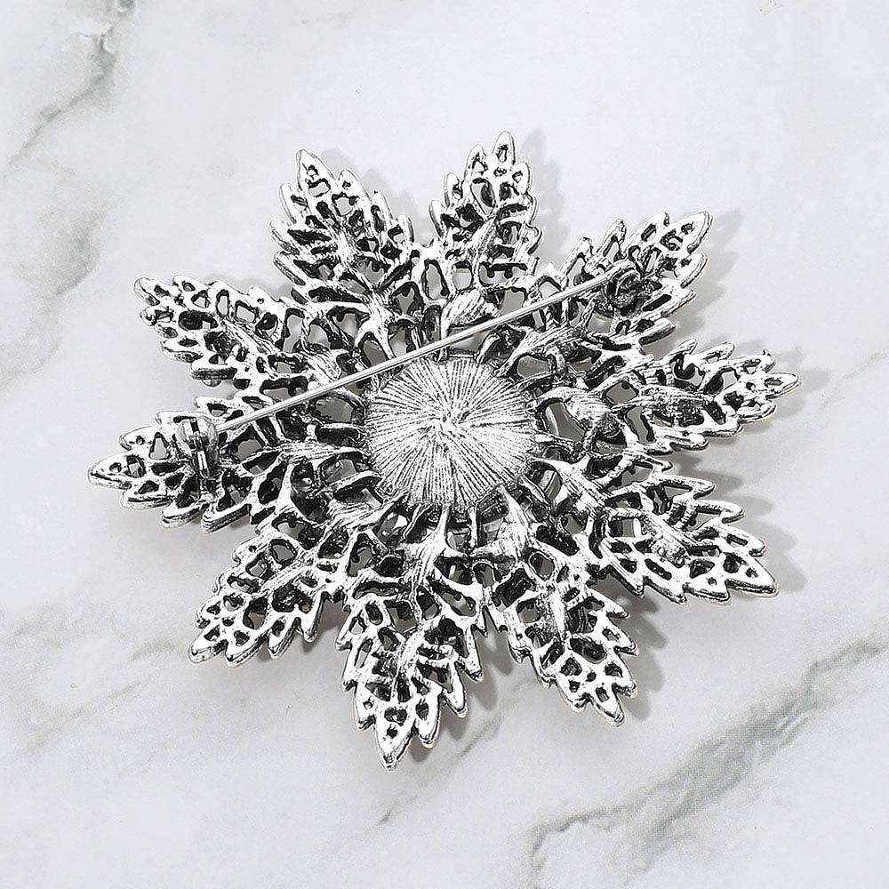 Details • Size : 3.3" X 3.5" • Pin Brooch • Make a statement with this crystal floral starburst brooch, featuring a radiant layered design and a brilliant center stone that catches the light beautifully. A versatile accessory for elevating jackets, scarves, handbags, or special occasion looks. • Lead and Nickel Compliant