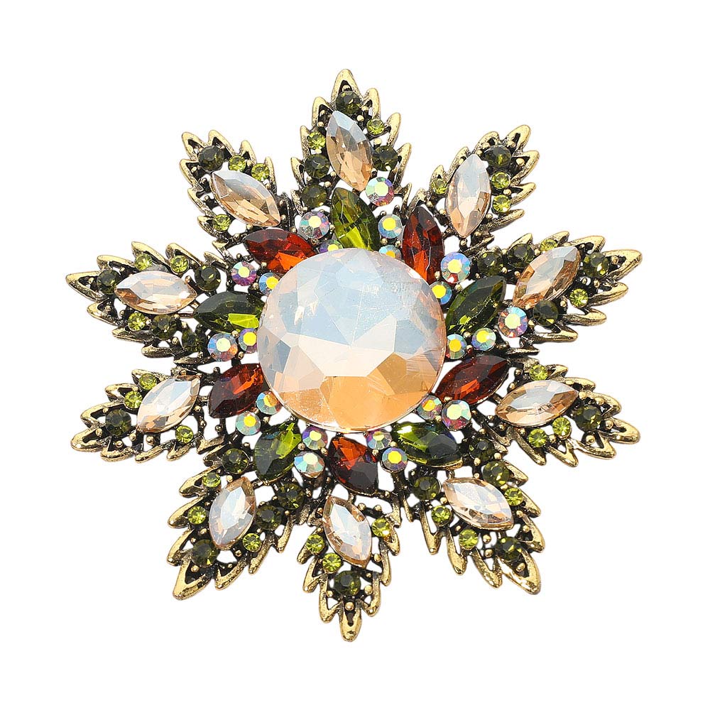 • Make a statement with this crystal floral starburst brooch, featuring a radiant layered design and a brilliant center stone that catches the light beautifully. A versatile accessory for elevating jackets, scarves, handbags, or special occasion looks.