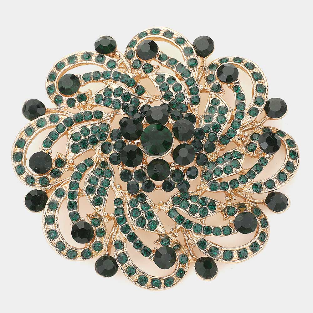 • Elegant round brooch featuring a swirling design with shimmering crystals and sparkling details. Perfect as a statement accessory for dresses, jackets, or special occasions, adding charm and brilliance to any look.