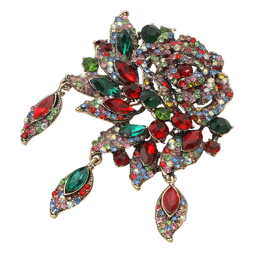Details • Size : 3.75" X 4.25" • Pin Brooch • Add timeless elegance to your style with this sparkling rose brooch, featuring a detailed floral design with dazzling accents. Perfect for special occasions or everyday charm, this statement pin makes a stunning accessory and a thoughtful gift for flower and jewelry lovers alike. • Lead and Nickel Compliant