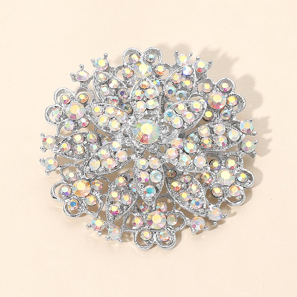 • Bring a touch of brilliance to formal outfits with this vintage-inspired floral brooch, featuring shimmering crystals arranged in an ornate design. Ideal for weddings, evening attire, and special occasions, it adds elegant sparkle and a sophisticated accent to dresses, shawls, and outerwear.