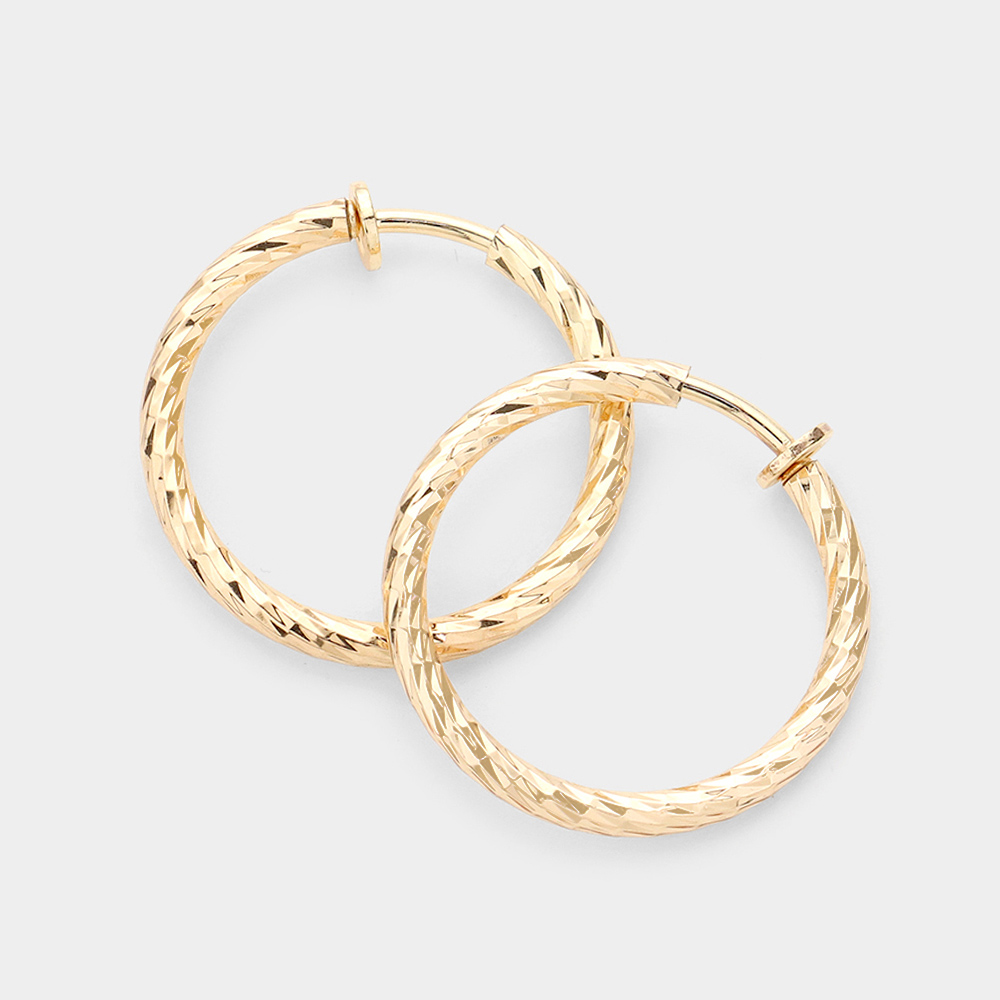 Secret Box _ White Gold Dipped Metal Angled Hoop Earrings