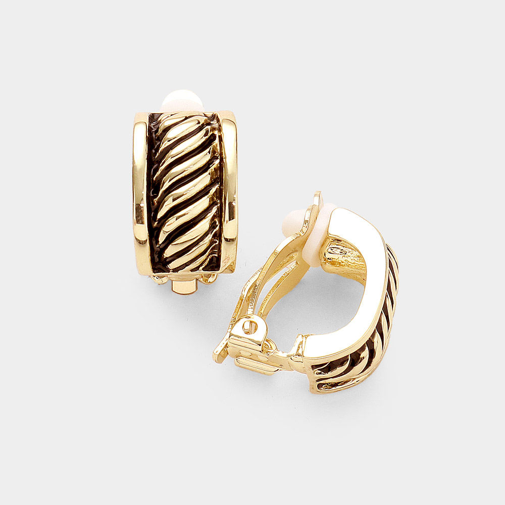Antique Metal Oblique Line Half Hoop Clip On Earrings