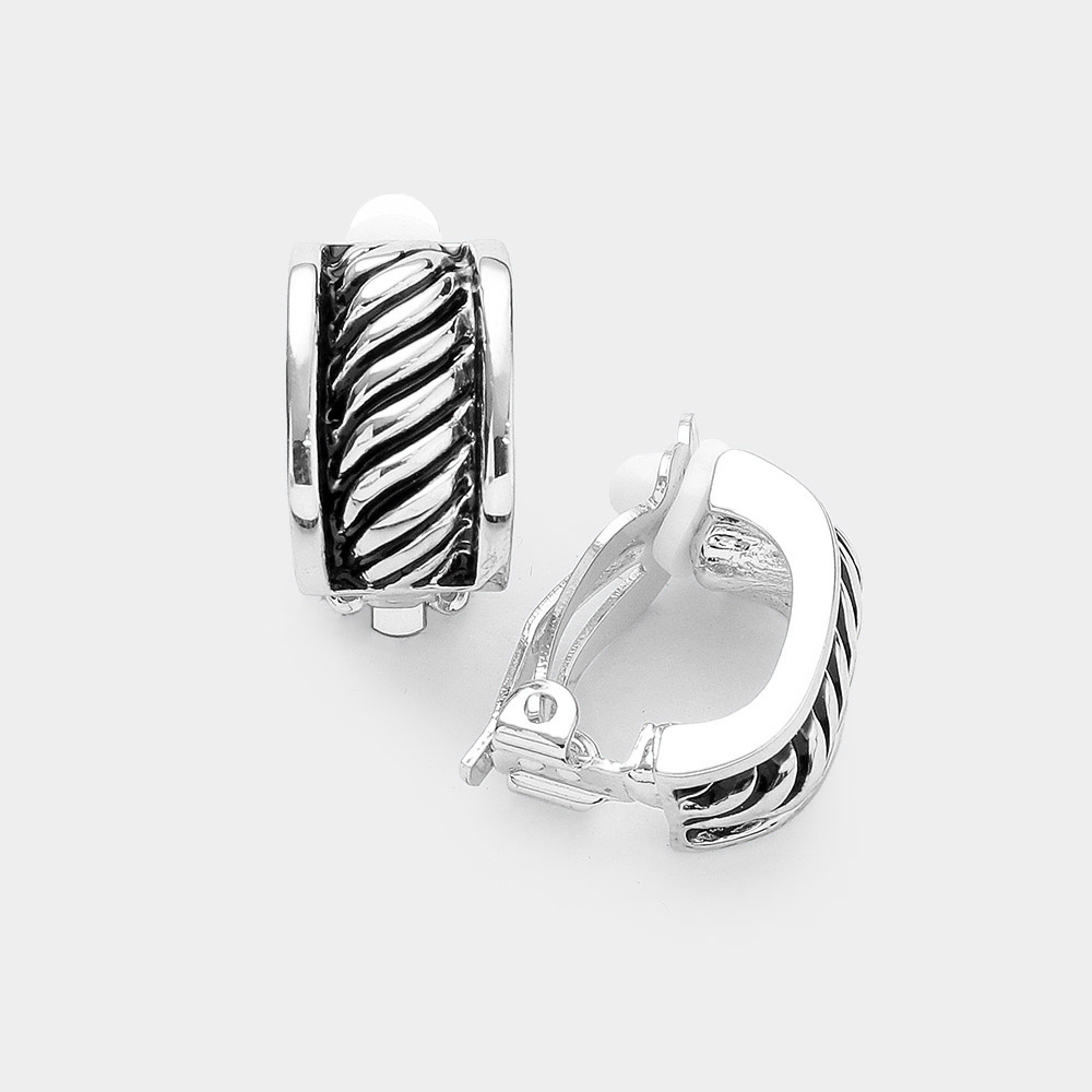 Antique Metal Oblique Line Half Hoop Clip On Earrings