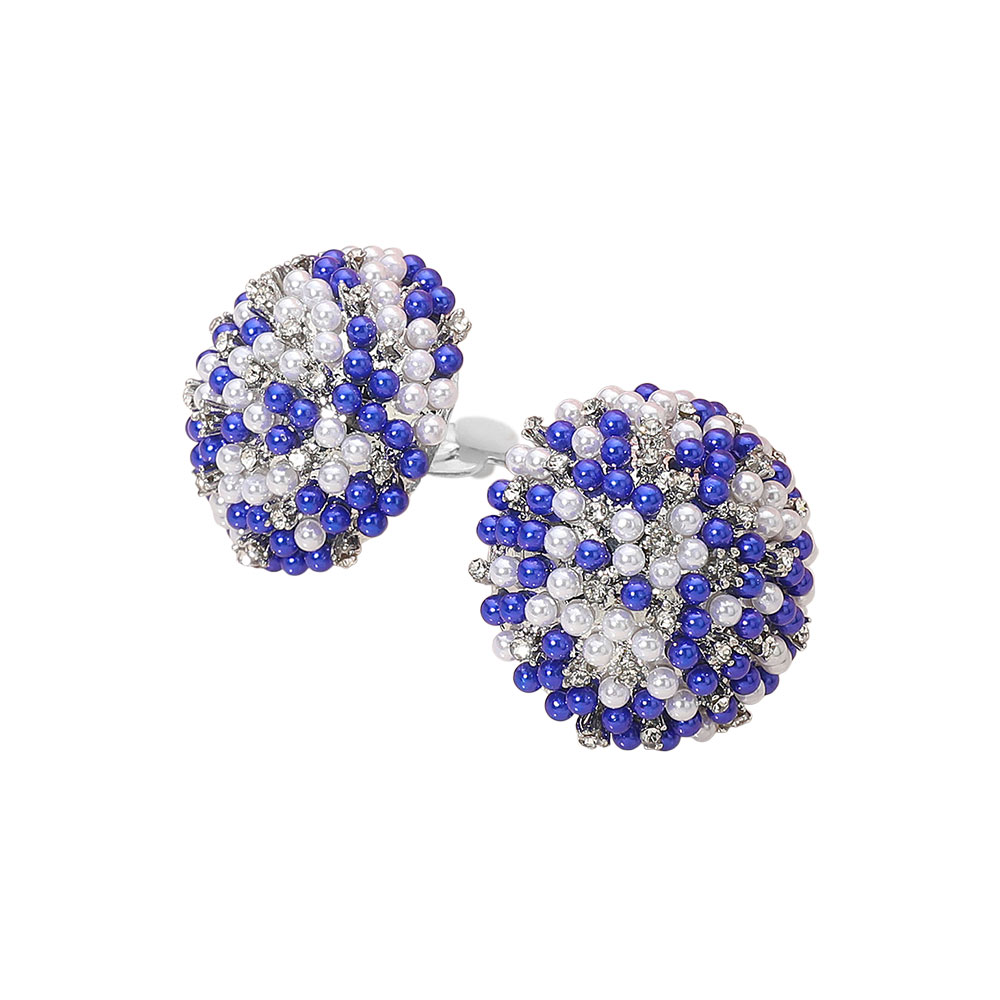 • Elegant clip-on earrings featuring a cluster of round beads accented with sparkling rhinestones for a touch of glamour. Perfect for both casual and formal occasions, these statement earrings add timeless sophistication and refined sparkle to any ensemble.