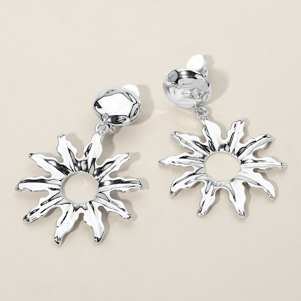 • Statement clip-on drop earrings featuring an abstract sunburst design with sculptural petal details. Lightweight and comfortable for non-pierced ears, these eye-catching earrings add artistic flair to everyday looks, resort wear, or special occasion styling.