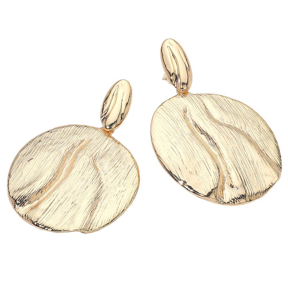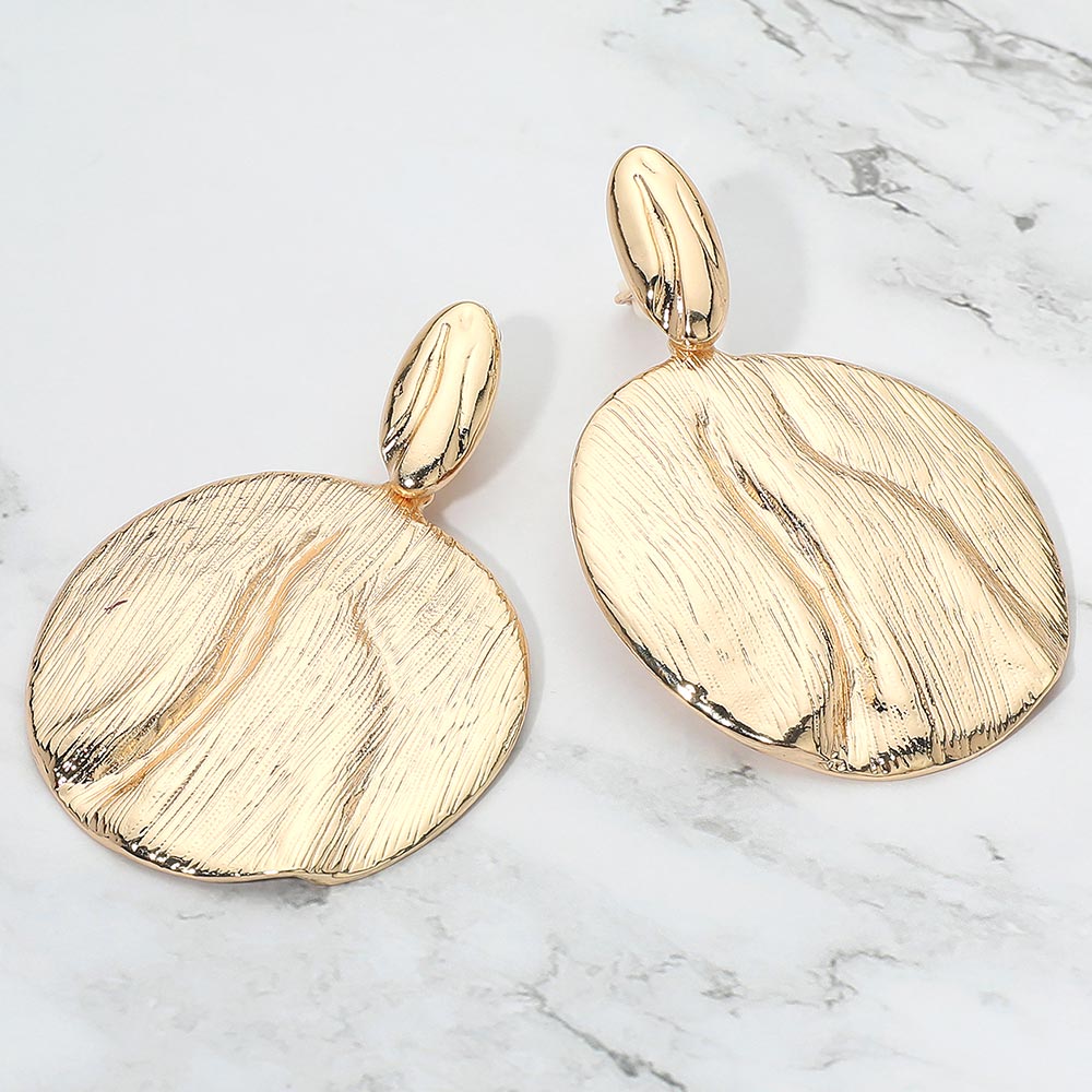 Bold Textured Metal Disc Drop Clip On Earrings Bold Textured Metal Disc Drop Clip On Earrings