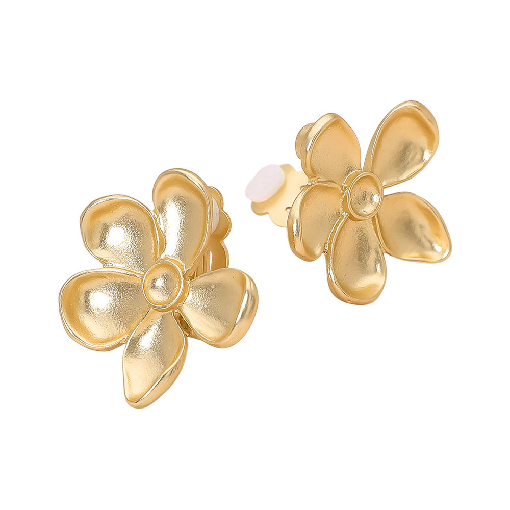 Brushed Metal Flower Clip On Earrings Brushed Metal Flower Clip On Earrings