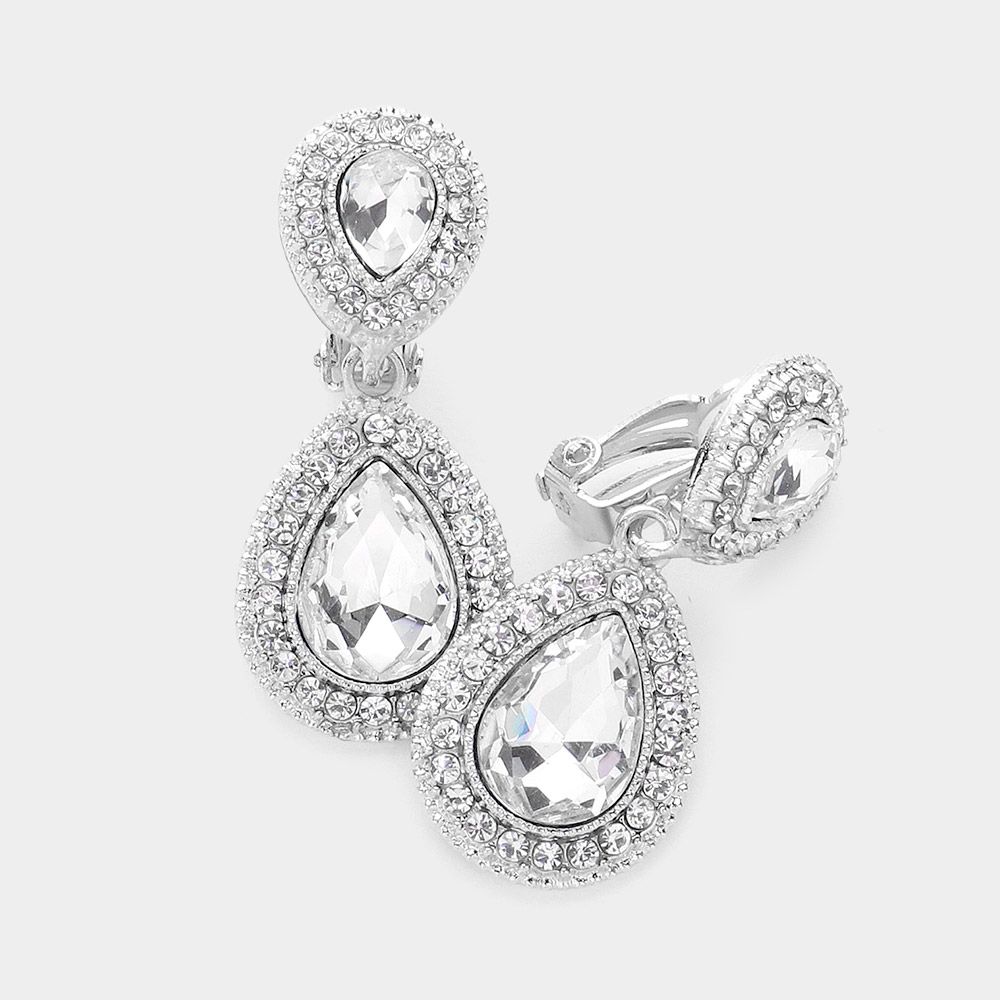 Double Teardrop Link Dangle Evening Clip on Earrings