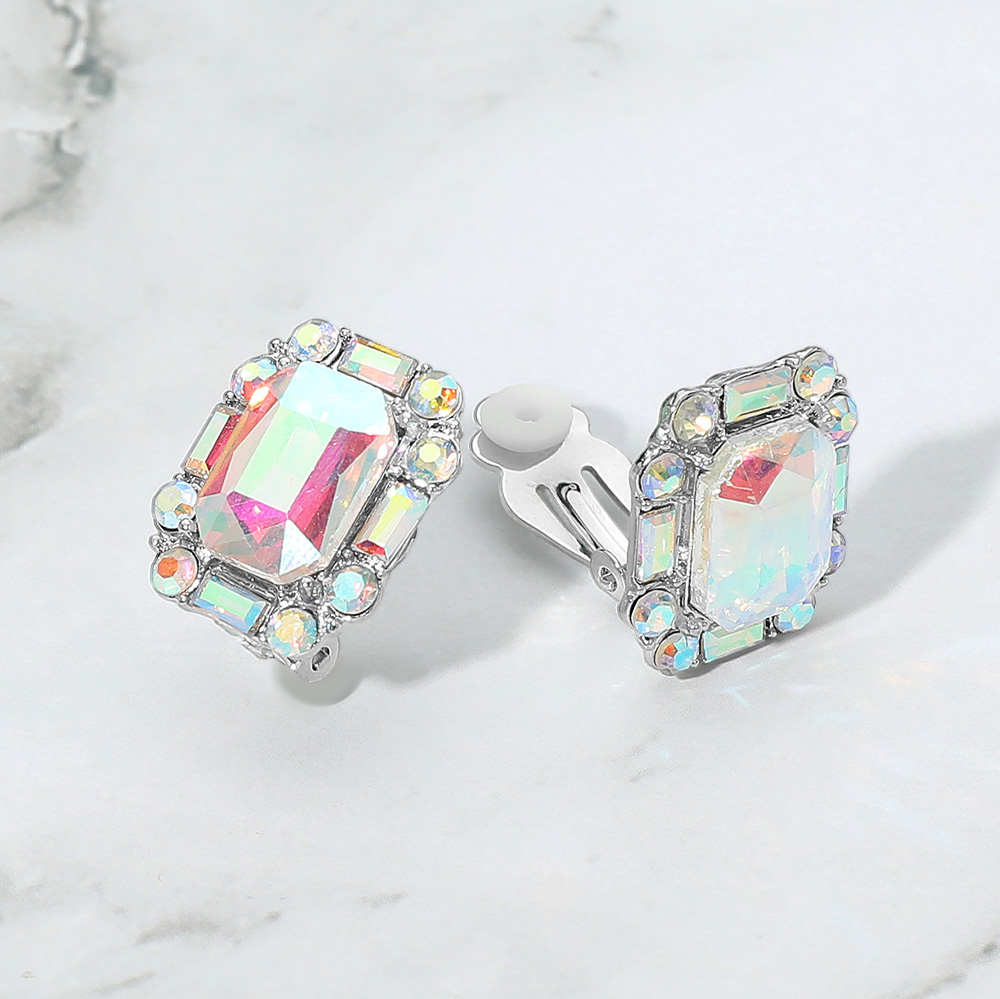 • Shine effortlessly with these vintage inspired clip-on earrings featuring a radiant faceted crystal framed by shimmering accents. Lightweight and easy to wear, these statement earrings add instant glamour to any outfit, perfect for weddings, parties, or elegant evening occasions.
