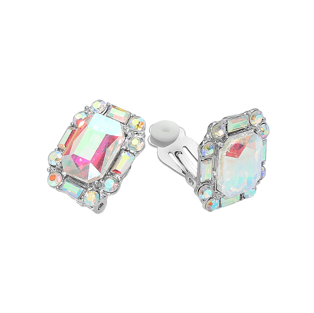 Emerald Cut Stone Evening Clip On Earrings Emerald Cut Stone Evening Clip On Earrings