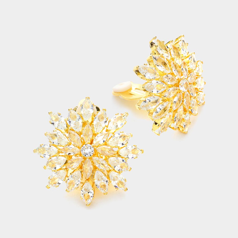 Floral Marquise Stone Cluster Clip On Evening Earrings