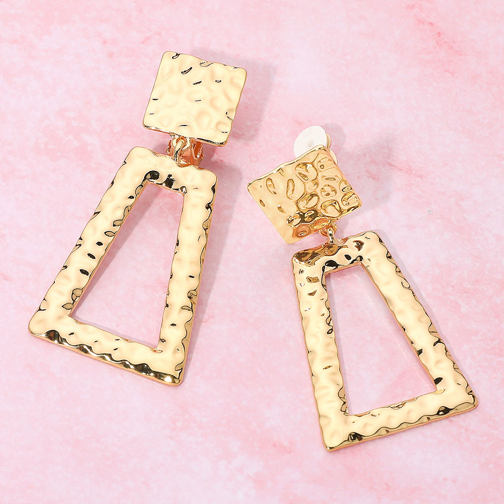 Geometric Hammered Metal Drop Clip On Earrings Geometric Hammered Metal Drop Clip On Earrings