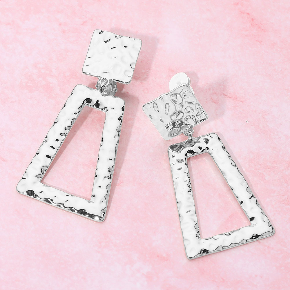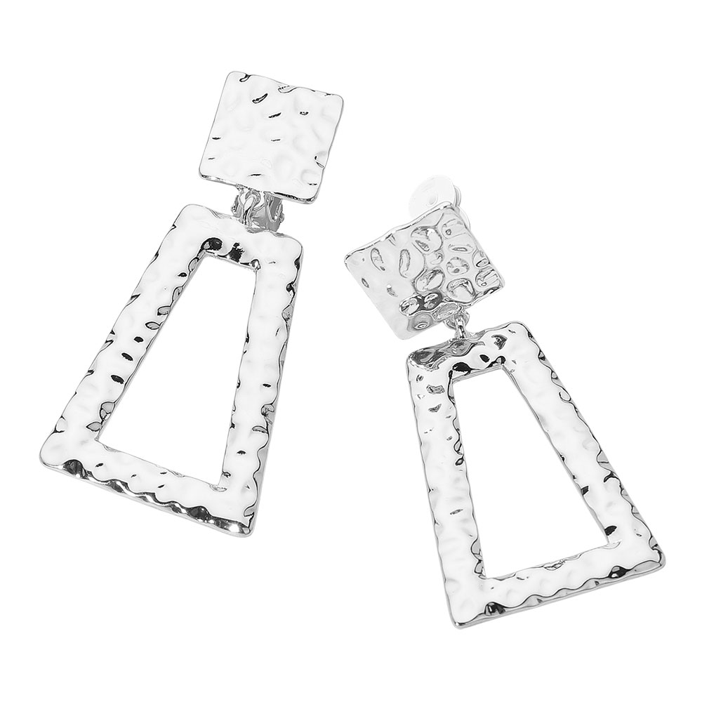 Geometric Hammered Metal Drop Clip On Earrings