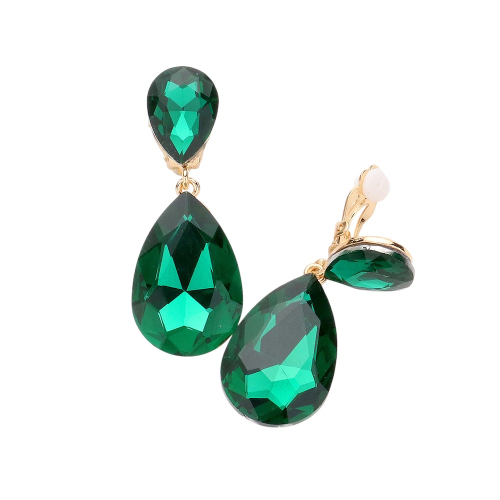 Glass Crystal Double Teardrop Clip On Evening Earrings Glass Crystal Double Teardrop Clip On Evening Earrings