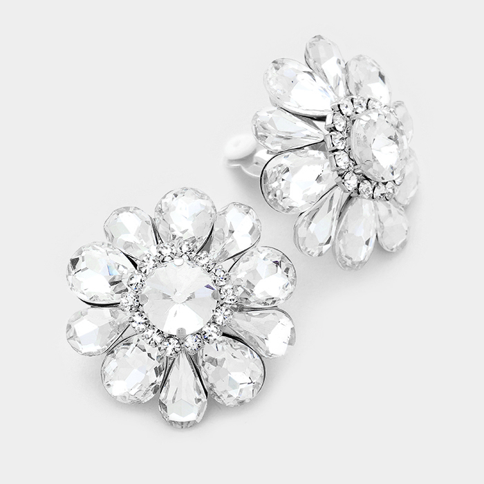 Marquise Stone Cluster Embellished Flower Stretch Evening Bracelet