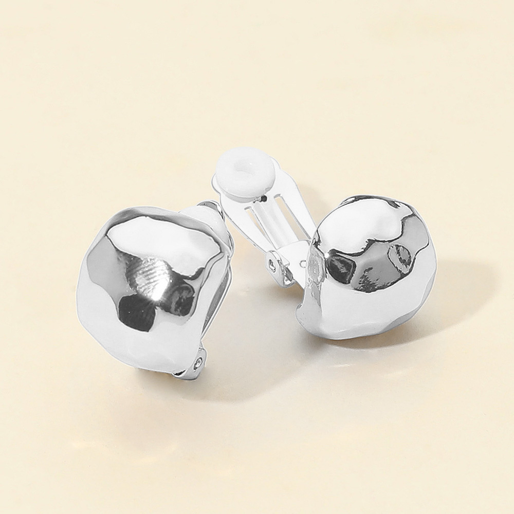• Chic hammered dome clip-on earrings with a polished finish. Designed for comfort and style, these earrings offer a modern yet timeless look without the need for pierced ears, making them perfect for everyday wear or adding a bold touch to dressy outfits.