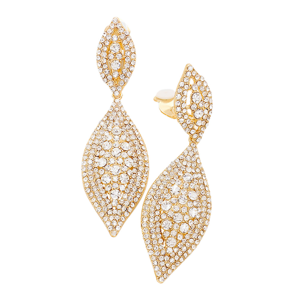 • These leaf-shaped drop clip earrings bring refined sparkle to any look with their intricate pavĂ© detailing and elongated silhouette. Designed for effortless elegance, they offer a radiant finish that enhances both special-occasion and everyday styling with graceful brilliance.