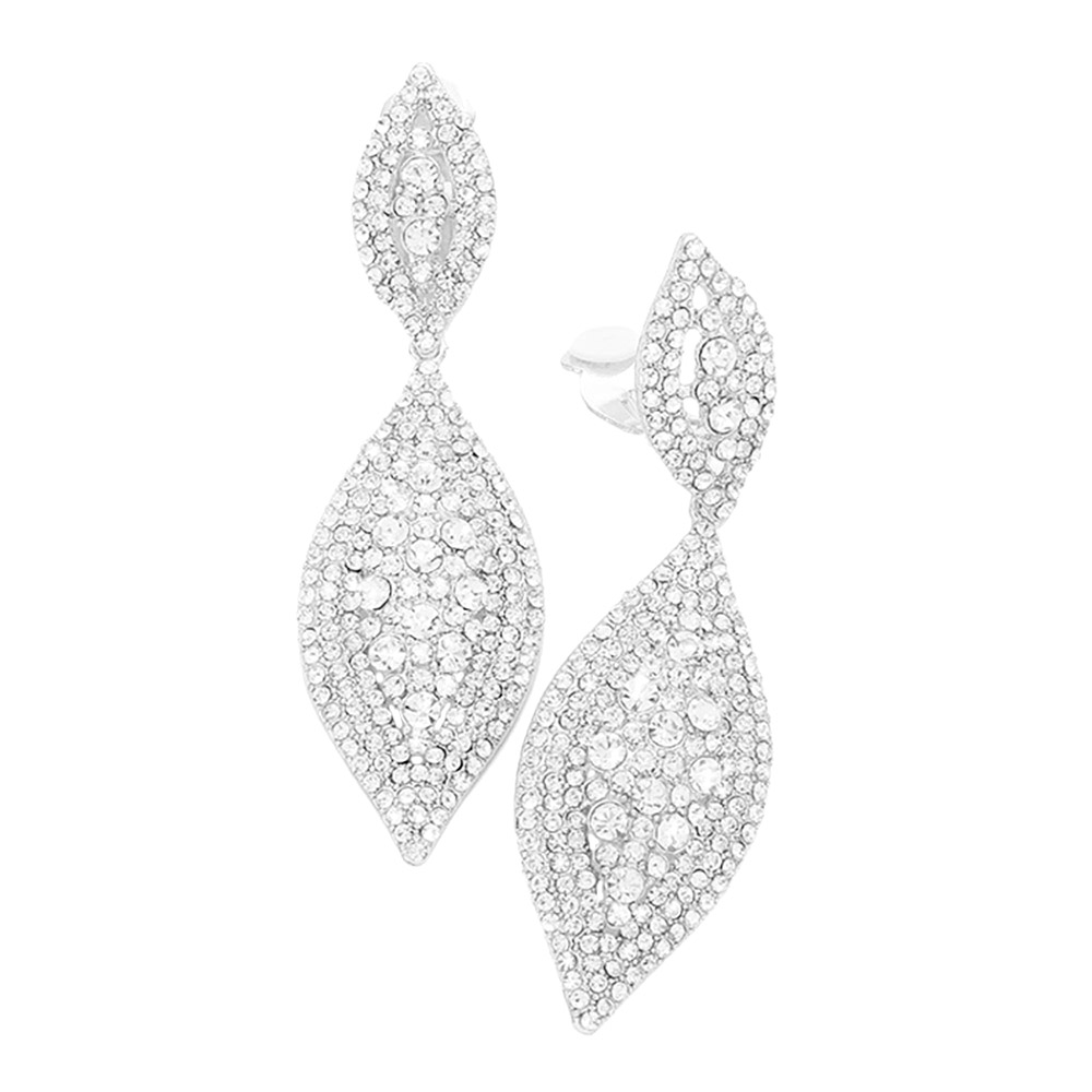 • These leaf-shaped drop clip earrings bring refined sparkle to any look with their intricate pavĂ© detailing and elongated silhouette. Designed for effortless elegance, they offer a radiant finish that enhances both special-occasion and everyday styling with graceful brilliance.