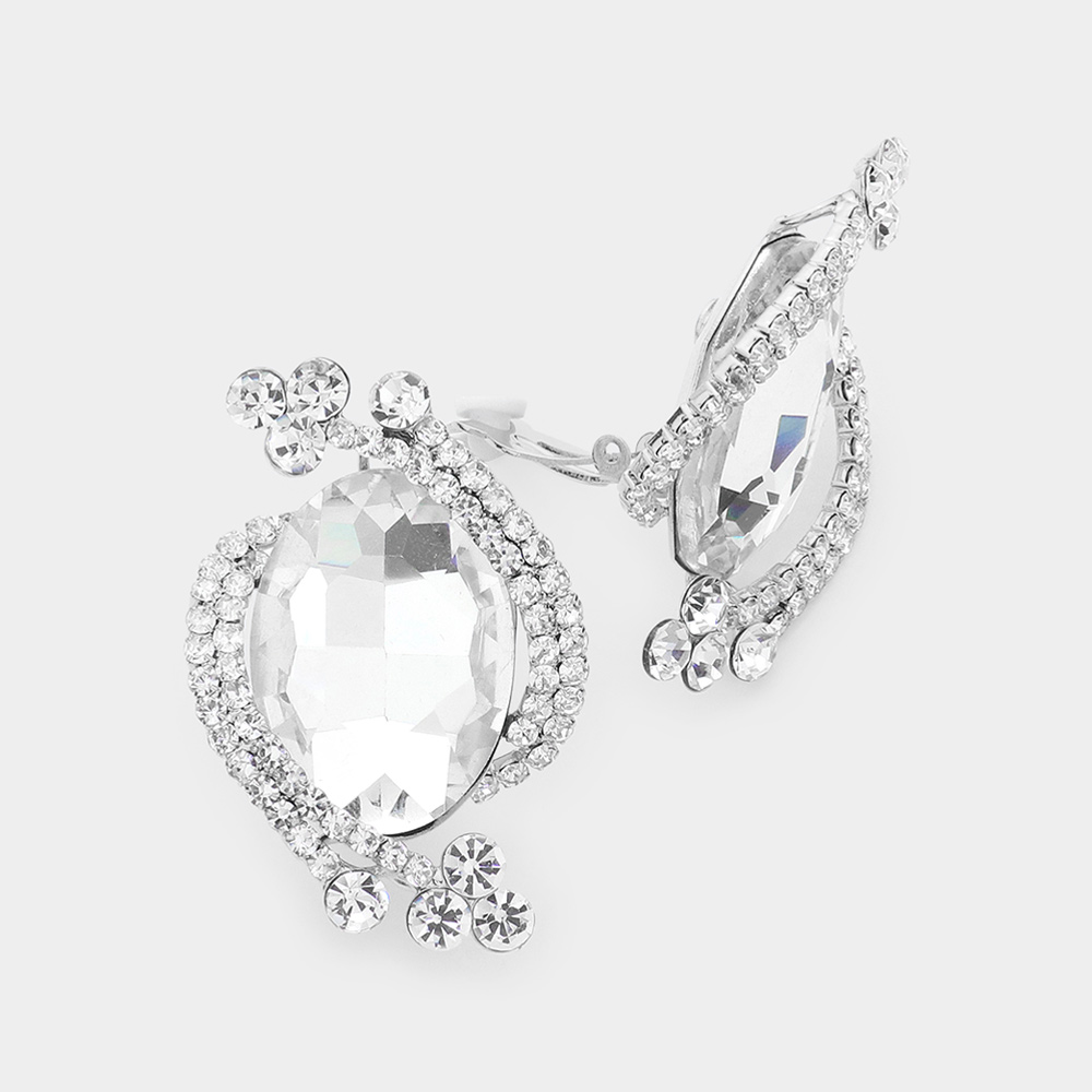 Marquise Stone Cluster Teardrop Link Dangle Evening Earrings