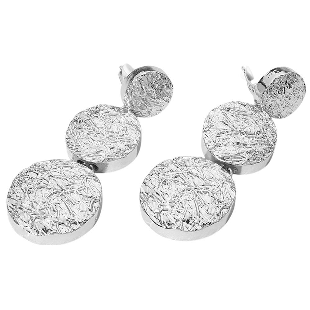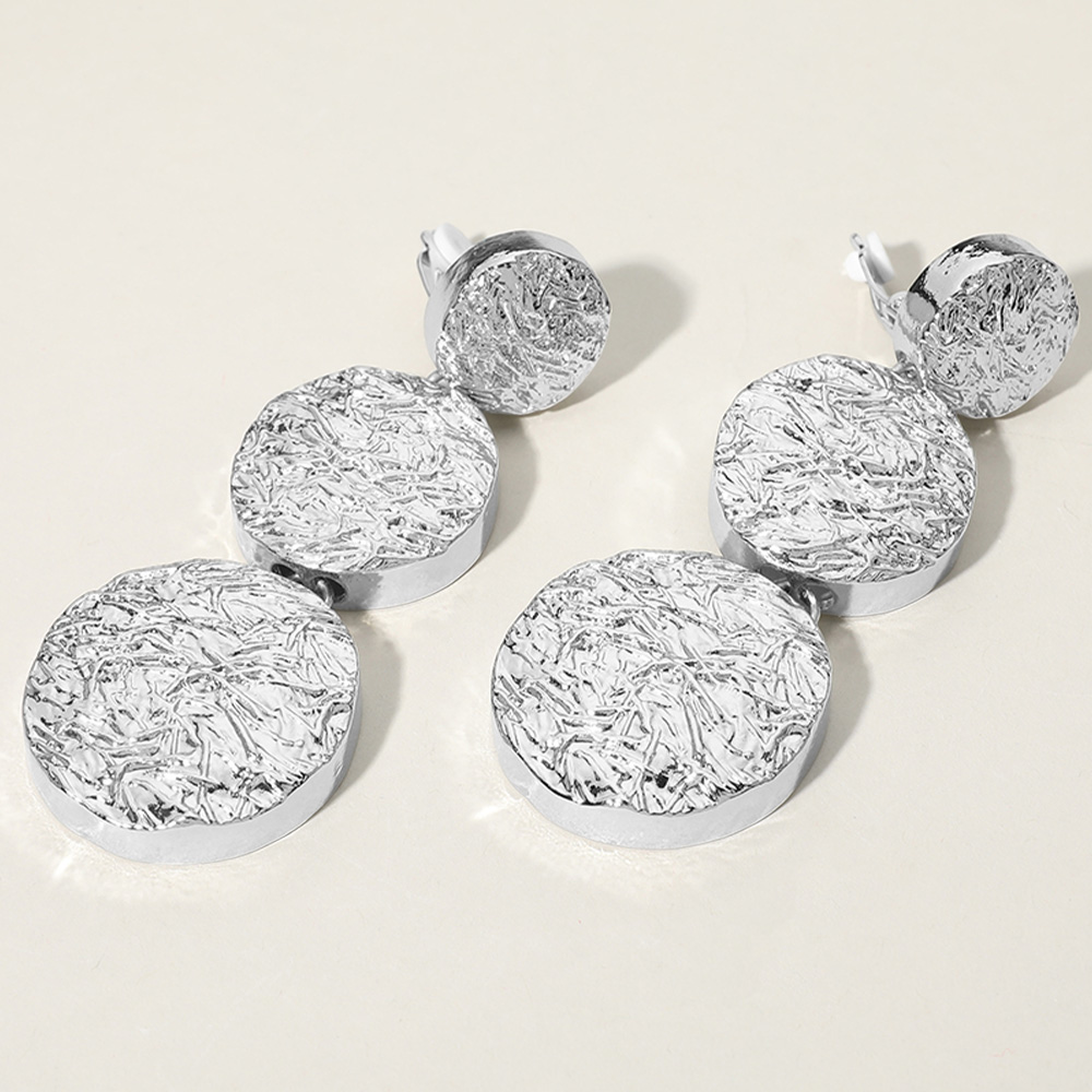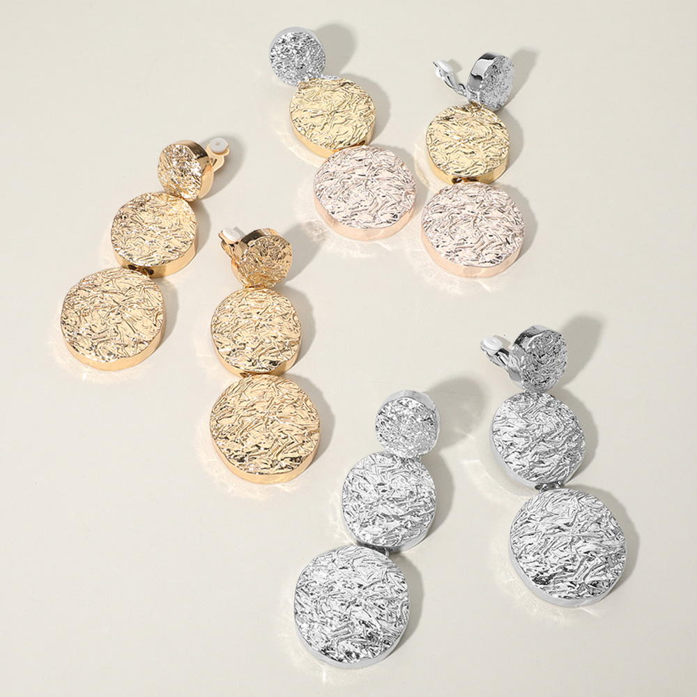 Oversized Chunky Textured Metal Disc Link Dropdown Clip On Earrings