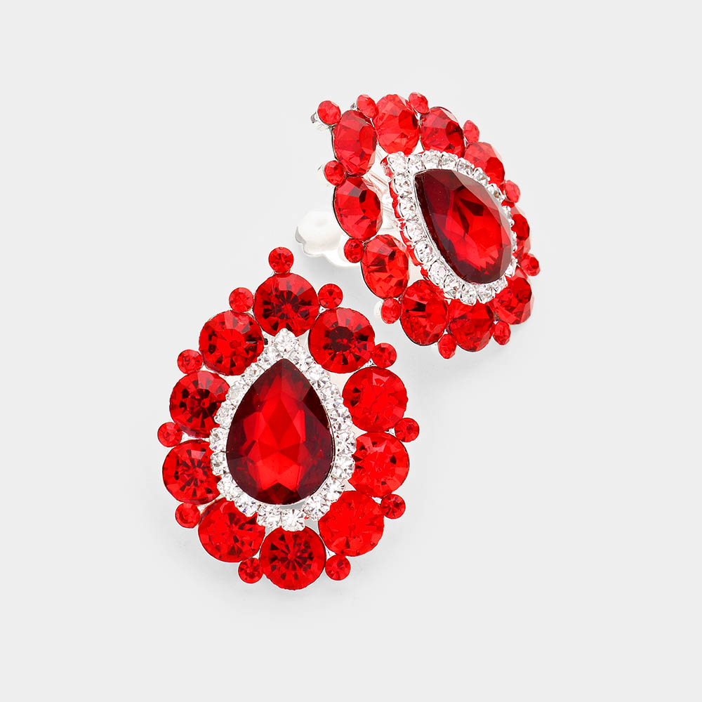 Pave Trim Crystal Teardrop Evening Clip On Earrings