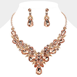 Crystal Teardrop Rhinestone Pave Evening Necklace