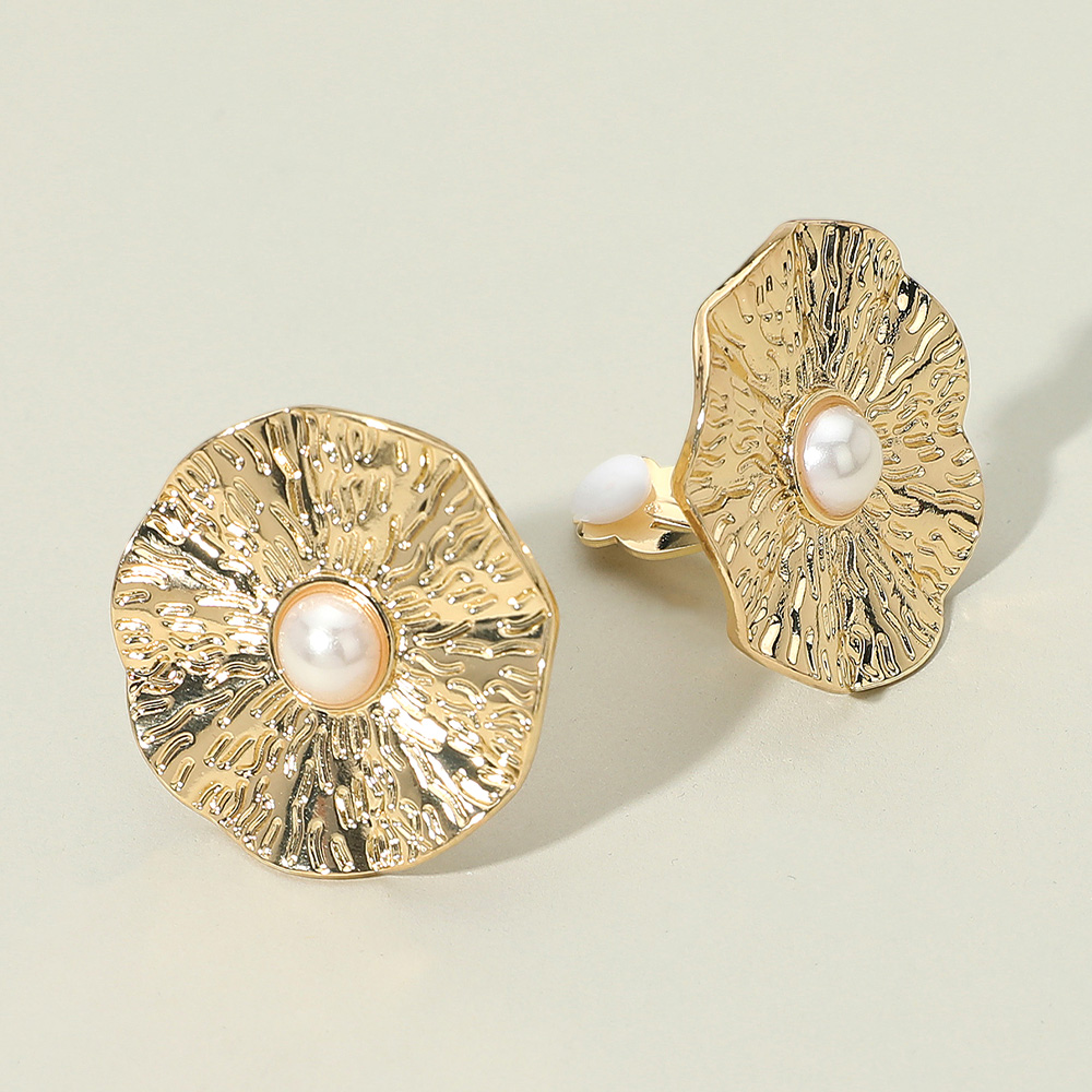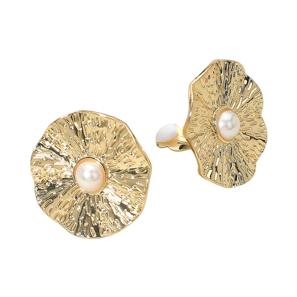• These pearl accent clip-on earrings feature a textured floral-inspired design with a lustrous centerpiece. Chic and comfortable, they add sophistication to any outfit, making them a versatile accessory for both casual wear and elegant occasions.