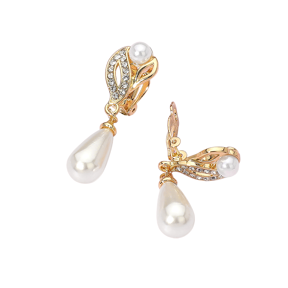 Details • Size : 0.5" X 1.75" • Clip On • Exude timeless grace with these teardrop pearl and crystal clip-on earrings. Featuring an elegant drop design accented with sparkling details, they add a refined touch to any outfit. Perfect for weddings, evening events, or enhancing your everyday sophisticated style. • Lead and Nickel Compliant