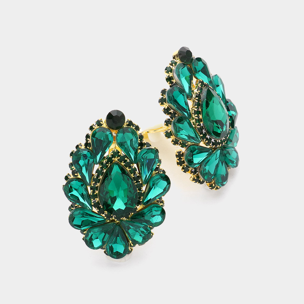 Teardrop Crystal Cluster Clip on Evening Earrings