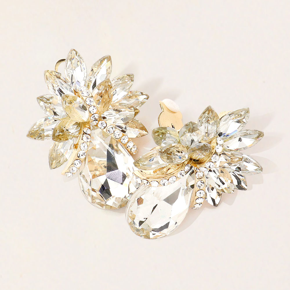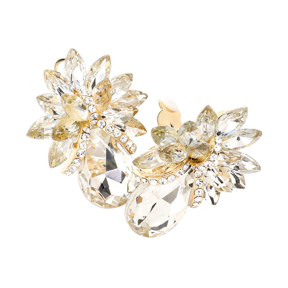 Teardrop Stone Accented Clip on Evening Earrings Teardrop Stone Accented Clip on Evening Earrings
