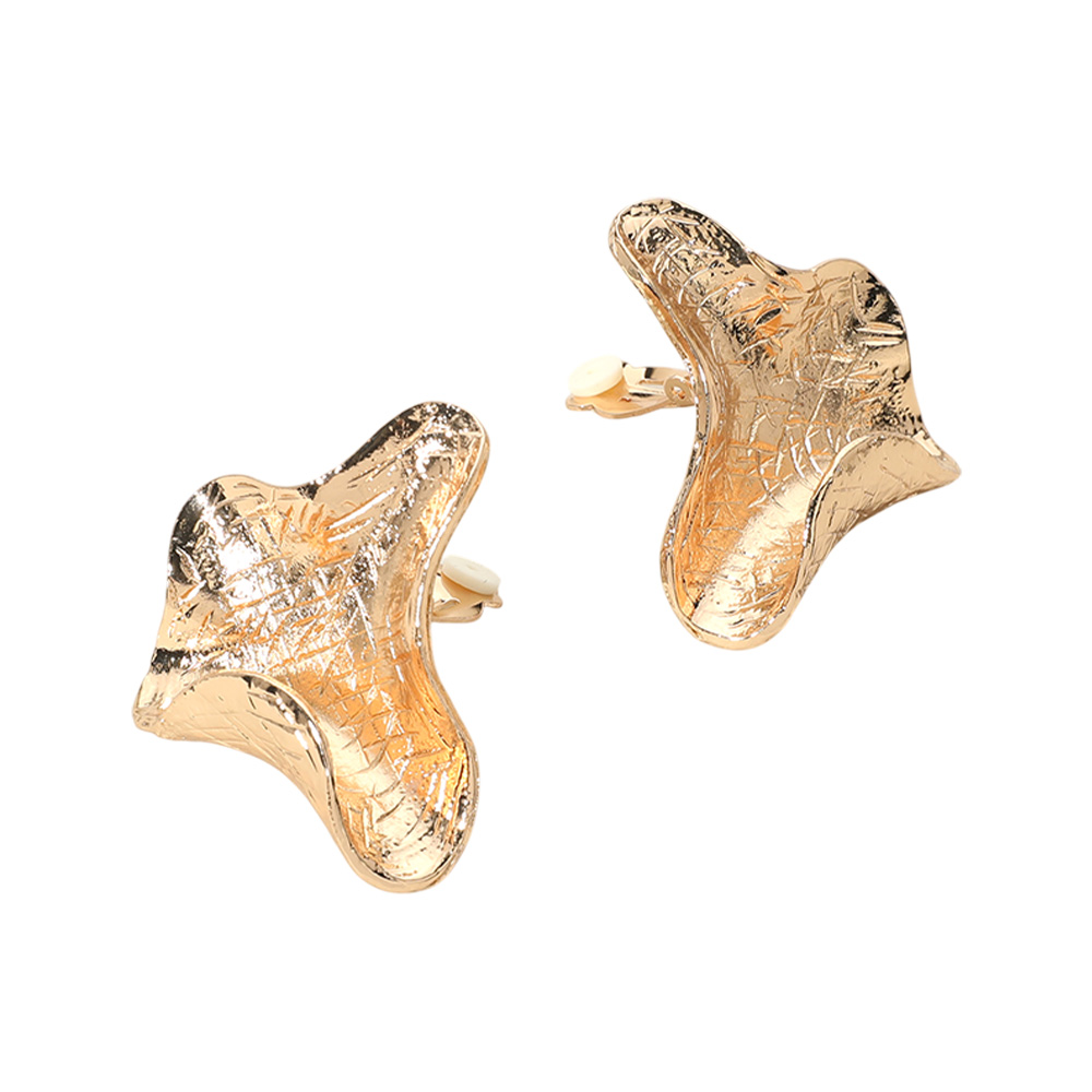 Details • Size : 1.7" X 1.5" • Clip On • Elevate your accessory game with these abstract-shaped clip-on earrings featuring a textured, organic design. Their sculptural form adds a bold, artistic flair to any look, offering comfort and statement-making style without the need for pierced ears. • Lead and Nickel Compliant