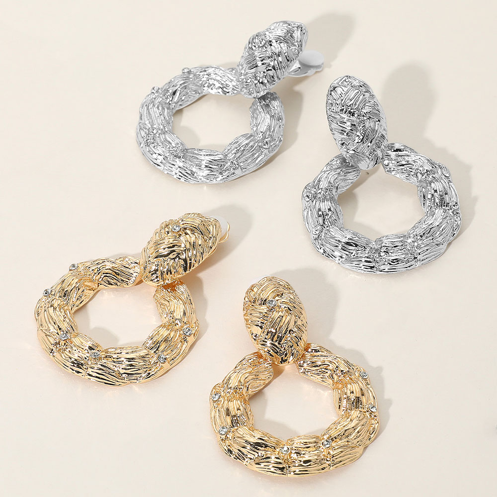 Details • Size : 1.4" X 1.8" • Clip On • Elevate your style with these textured hoop clip-on earrings featuring intricate detailing and sparkling crystal accents. Designed for comfort and elegance, they offer a bold yet versatile look perfect for both everyday wear and special occasions, without the need for pierced ears. • Lead and Nickel Compliant