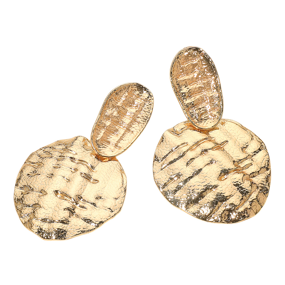 Details • Size : 1.7" X 2.5" • Clip On • Make a bold fashion statement with these textured abstract oval clip-on earrings. Featuring a hammered finish with layered oval drops, they add artistic flair and modern elegance. Comfortable clip-on design makes them ideal for non-pierced ears and versatile all-day wear. • Lead and Nickel Compliant