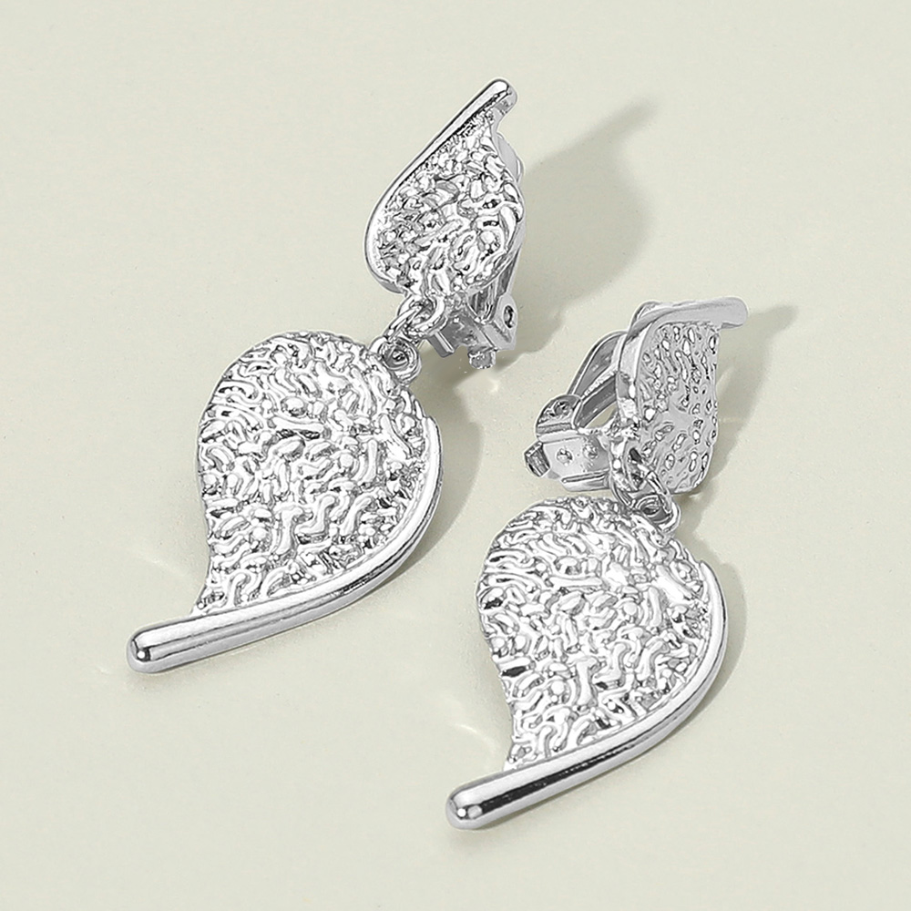 Details • Size : 0.7" X 2.25" • Clip On • These textured leaf clip-on earrings showcase a refined drop design with intricate detailing, perfect for adding sophistication to any outfit. Comfortable and versatile, they complement both casual looks and elegant ensembles, making them a timeless accessory choice. • Lead and Nickel Compliant