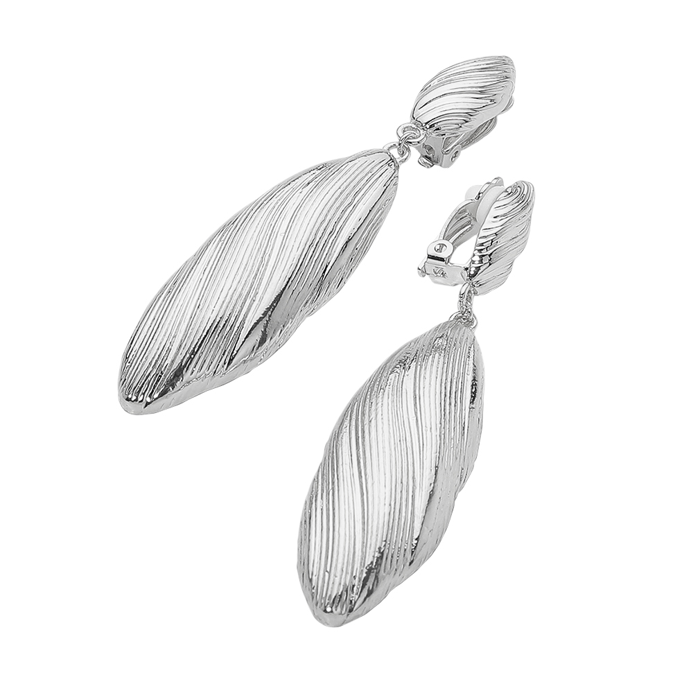Details • Size : 0.75" X 3.1" • Clip On • Elevate your look with these textured drop clip-on earrings, crafted in a flowing elongated design. Their lightweight structure and secure clip-on style make them perfect for statement wear without compromising comfort. • Lead and Nickel Compliant