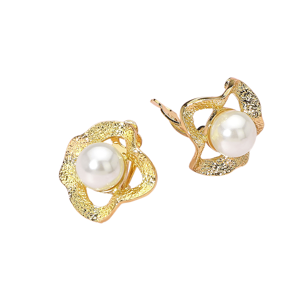 Details • Size : 0.8" X 0.8" • Clip On • Add timeless elegance to your look with these textured wave pearl clip-on earrings. Designed with an artistic open-frame silhouette and lustrous centerpiece, they bring sophistication and comfort to any ensemble. Perfect for both everyday wear and special occasions. • Lead and Nickel Compliant